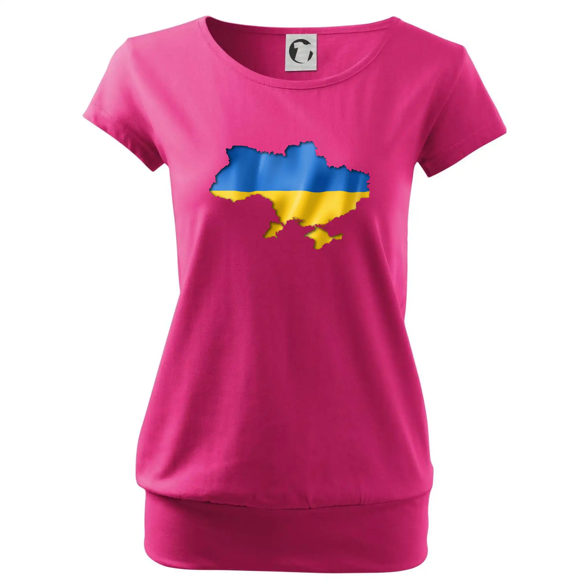 Trendové dámske tričko s veľmi krátkym rukávom, voľnejšieho strihu, v dolnom kraji všité do širokého lemu. Okrúhly priekrčník s úzkym lemom zo zhodného materiálu.