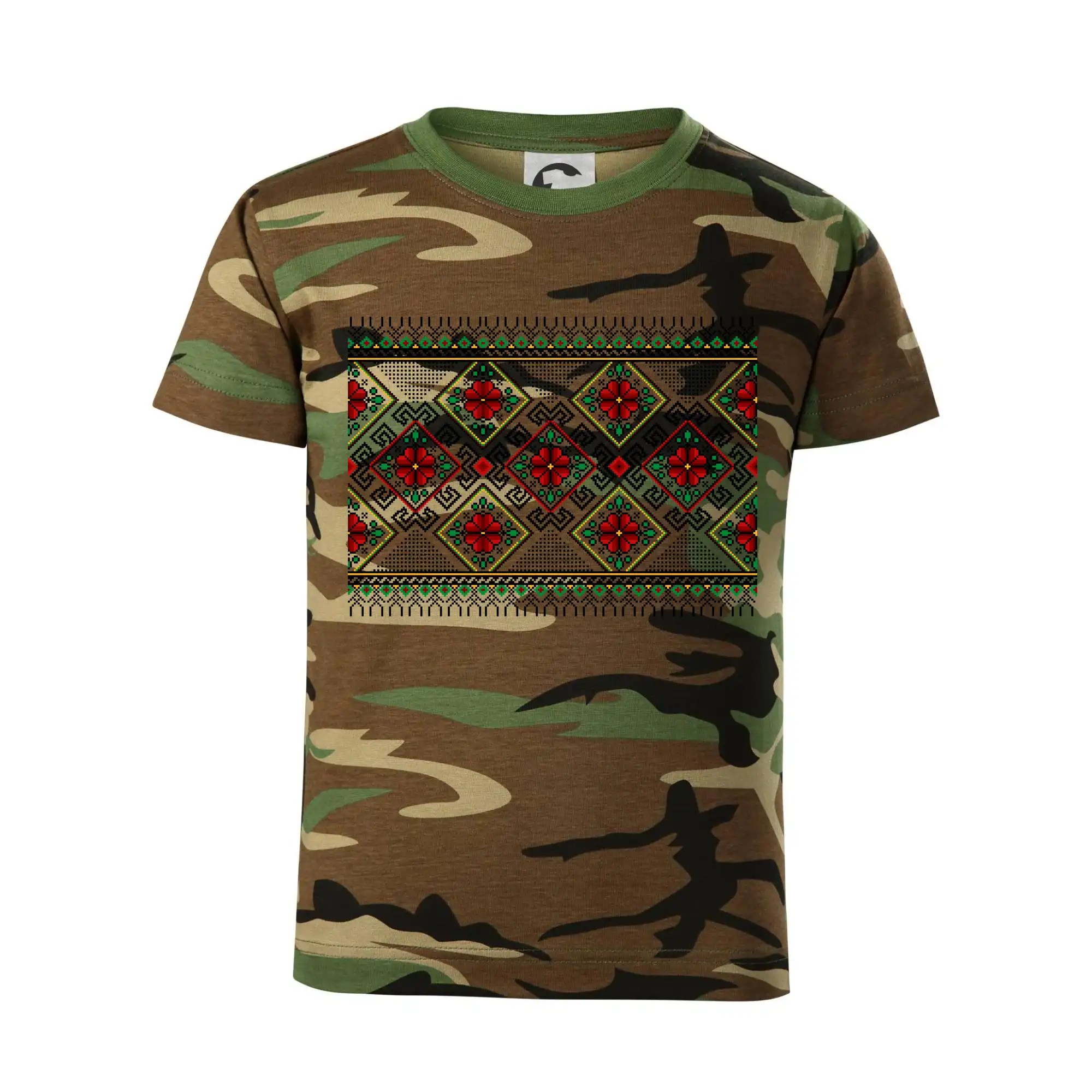 Detské tričko MALFINI Camouflage 149 je perfektné pre malých dobrodruhov, ktorí milujú originálny maskáčový dizajn. Pohodlný strih s bočnými švami je navrhnutý pre detskú postavu, poskytuje voľnosť pohybu a je ideálne na vonkajšie aktivity, hry alebo ležérne nosenie.