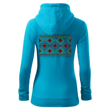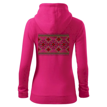 Dámska mikina MALFINI Trendy Zipper 411 spája moderný vzhľad s každodennou praktickosťou. Jej ľahko vypasovaný strih s bočnými švami zvýrazňuje ženskú siluetu, zatiaľ čo celoprepínací zips a kapucňa so sťahovacou šnúrkou dodávajú ležérny nádych. Našité vrecká typu „klokanka“ ponúkajú dostatok priestoru na drobnosti. Materiál s počesanou vnútornou stranou zabezpečuje mäkkosť a teplo vďaka zmesi bavlny a polyesteru.