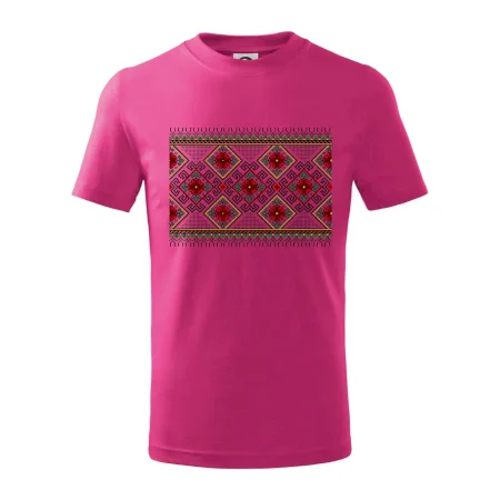 Detské tričko strednej gramáže s bočnými švami. Úzky priekrčník s prídavkom 5% elastanu. Vnútorná časť zadného priekrčníka začistená tkanou páskou. Spevnený ramenný šev.