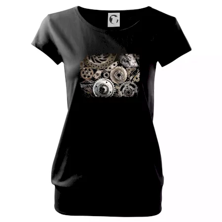 Trendové dámske tričko s veľmi krátkym rukávom, voľnejšieho strihu, v dolnom kraji všité do širokého lemu. Okrúhly priekrčník s úzkym lemom zo zhodného materiálu.