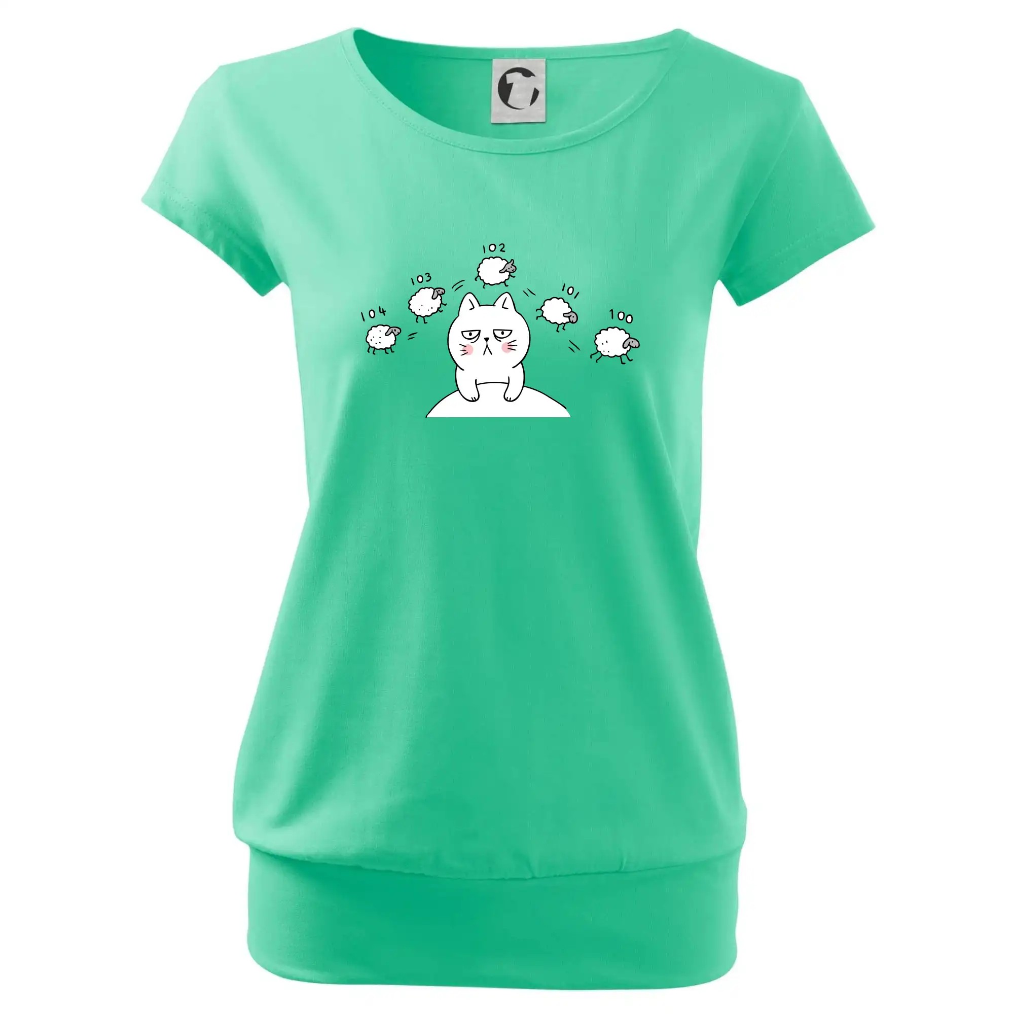 Trendové dámske tričko s veľmi krátkym rukávom, voľnejšieho strihu, v dolnom kraji všité do širokého lemu. Okrúhly priekrčník s úzkym lemom zo zhodného materiálu.