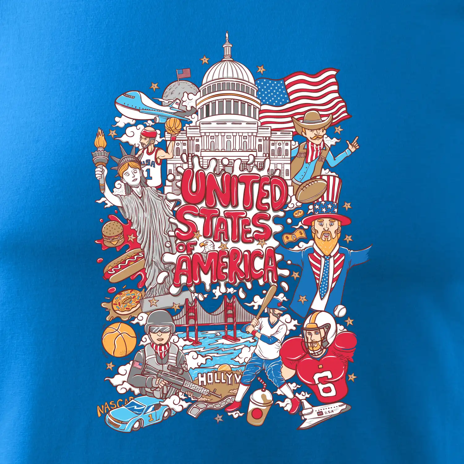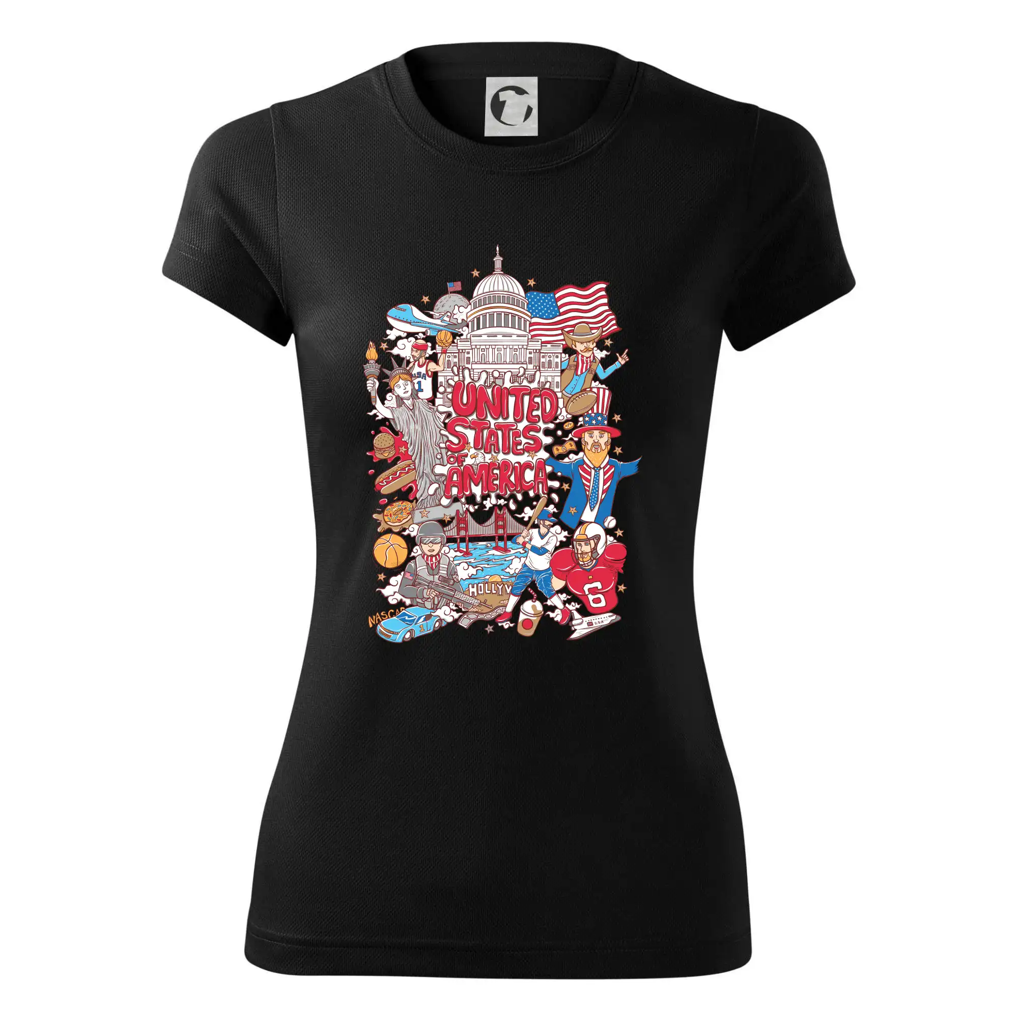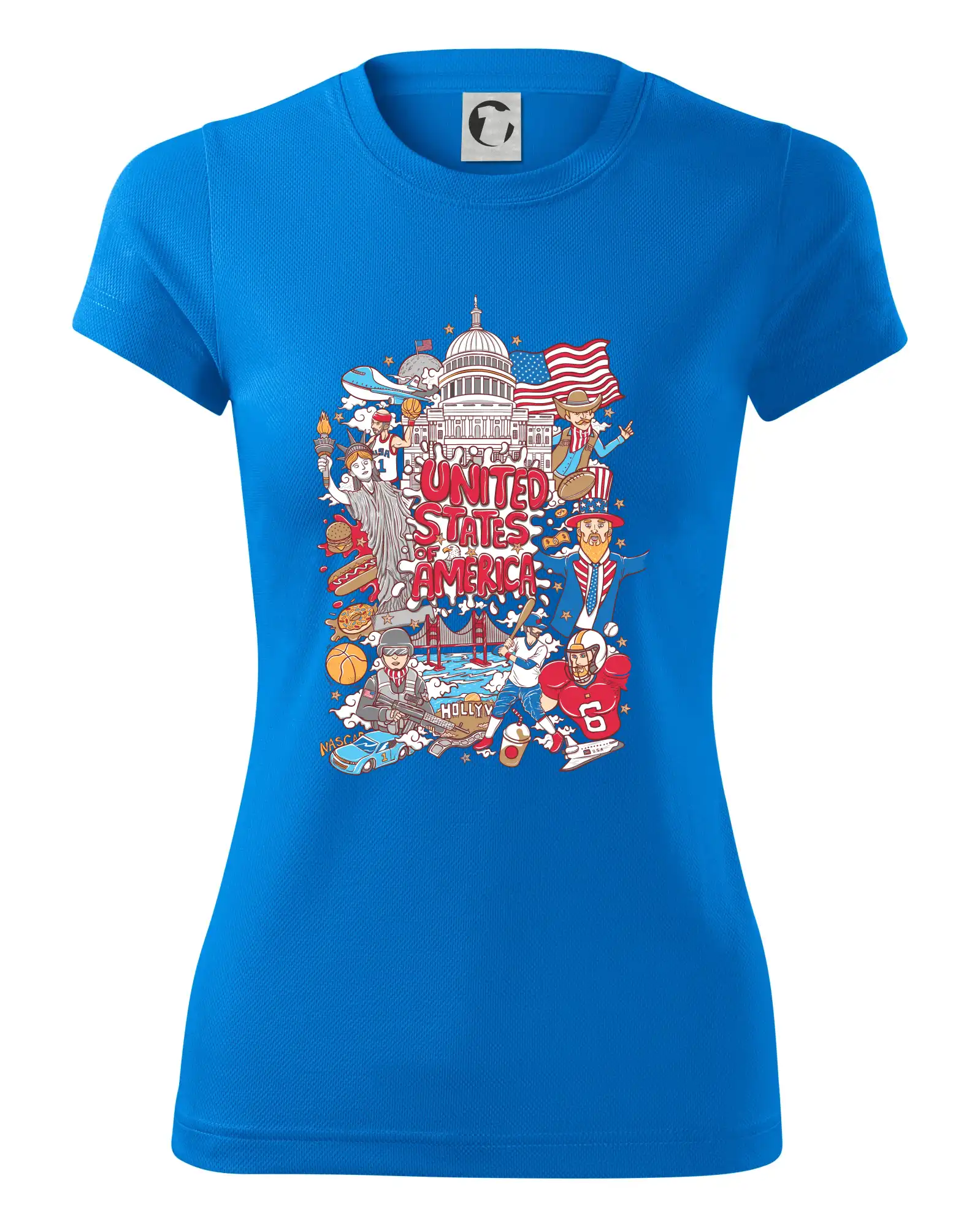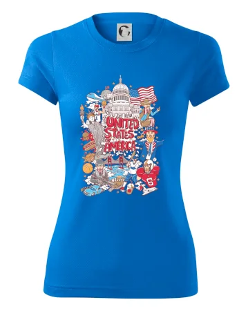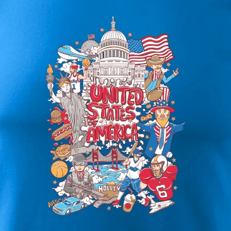Cestovateľské tričko pre cestovateľa, ktorý má rád USA. Tričko s motívom "United states of America" Ti pozvanie do Ameriky uľahčí. Tričko je vhodné pre cestovateľov, ktorí majú radi poznávanie nových zemí, najmä Spojených štátov amerických. Amerika s týmto tričko bude na dosah.