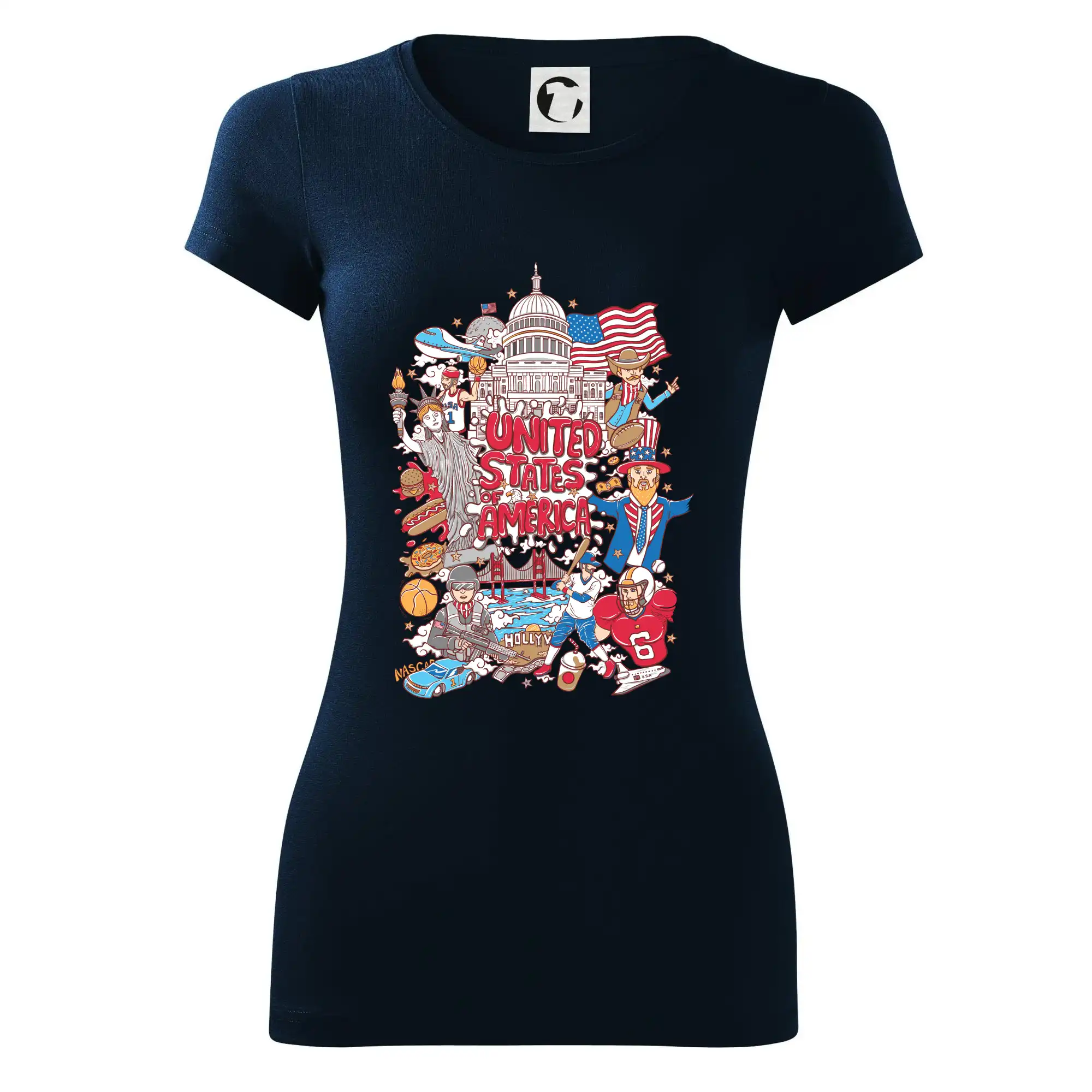 Cestovateľské tričko pre cestovateľa, ktorý má rád USA. Tričko s motívom "United states of America" Ti pozvanie do Ameriky uľahčí. Tričko je vhodné pre cestovateľov, ktorí majú radi poznávanie nových zemí, najmä Spojených štátov amerických. Amerika s týmto tričko bude na dosah.