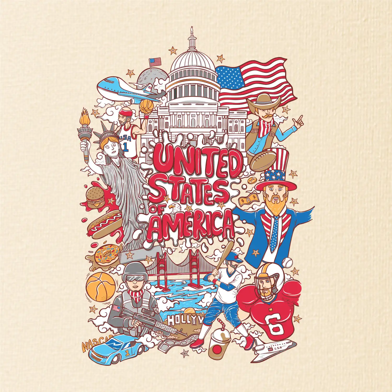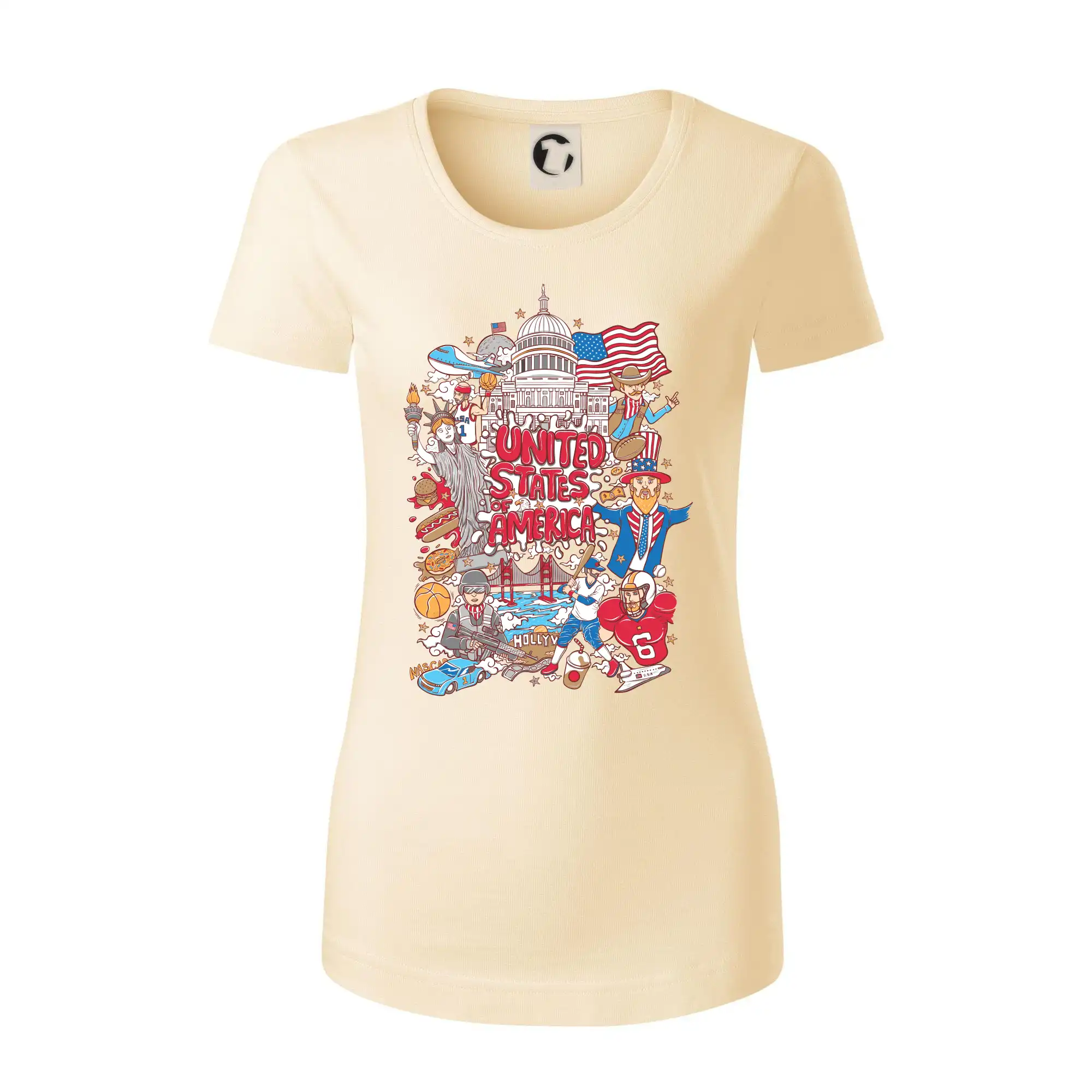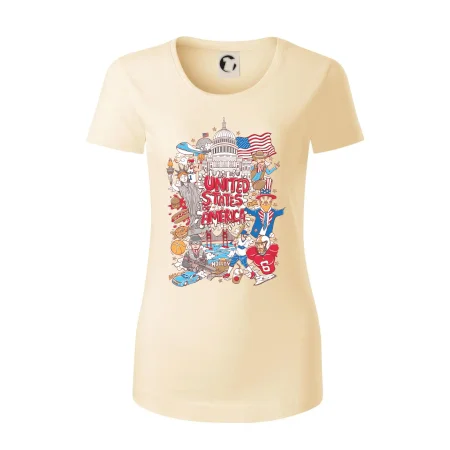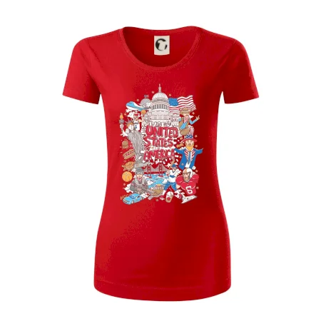 Cestovateľské tričko pre cestovateľa, ktorý má rád USA. Tričko s motívom "United states of America" Ti pozvanie do Ameriky uľahčí. Tričko je vhodné pre cestovateľov, ktorí majú radi poznávanie nových zemí, najmä Spojených štátov amerických. Amerika s týmto tričko bude na dosah.