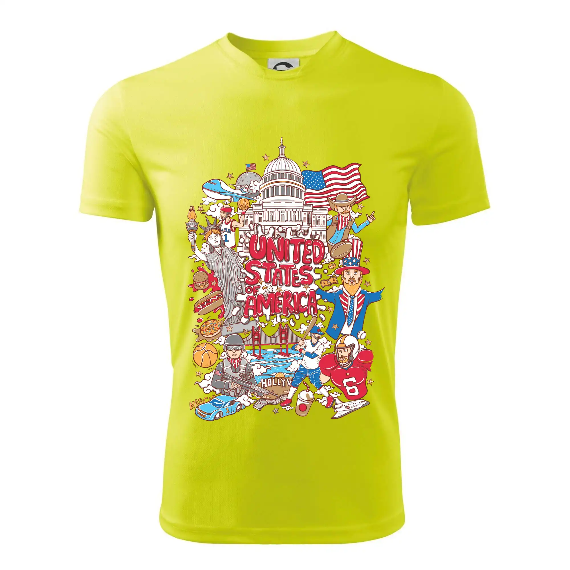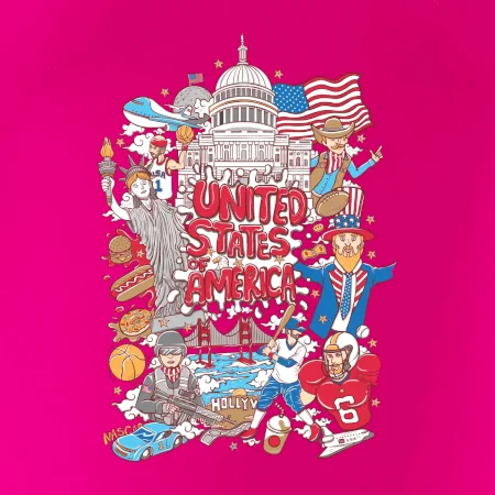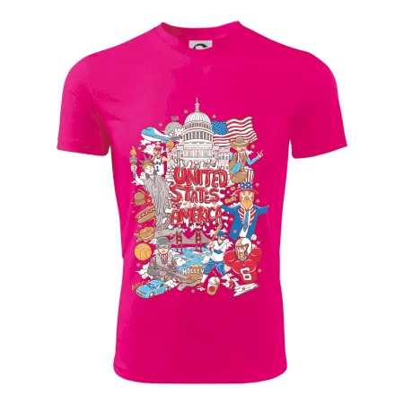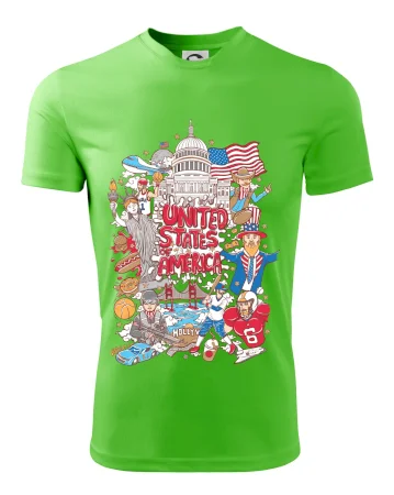 Cestovateľské tričko pre cestovateľa, ktorý má rád USA. Tričko s motívom "United states of America" Ti pozvanie do Ameriky uľahčí. Tričko je vhodné pre cestovateľov, ktorí majú radi poznávanie nových zemí, najmä Spojených štátov amerických. Amerika s týmto tričko bude na dosah.
