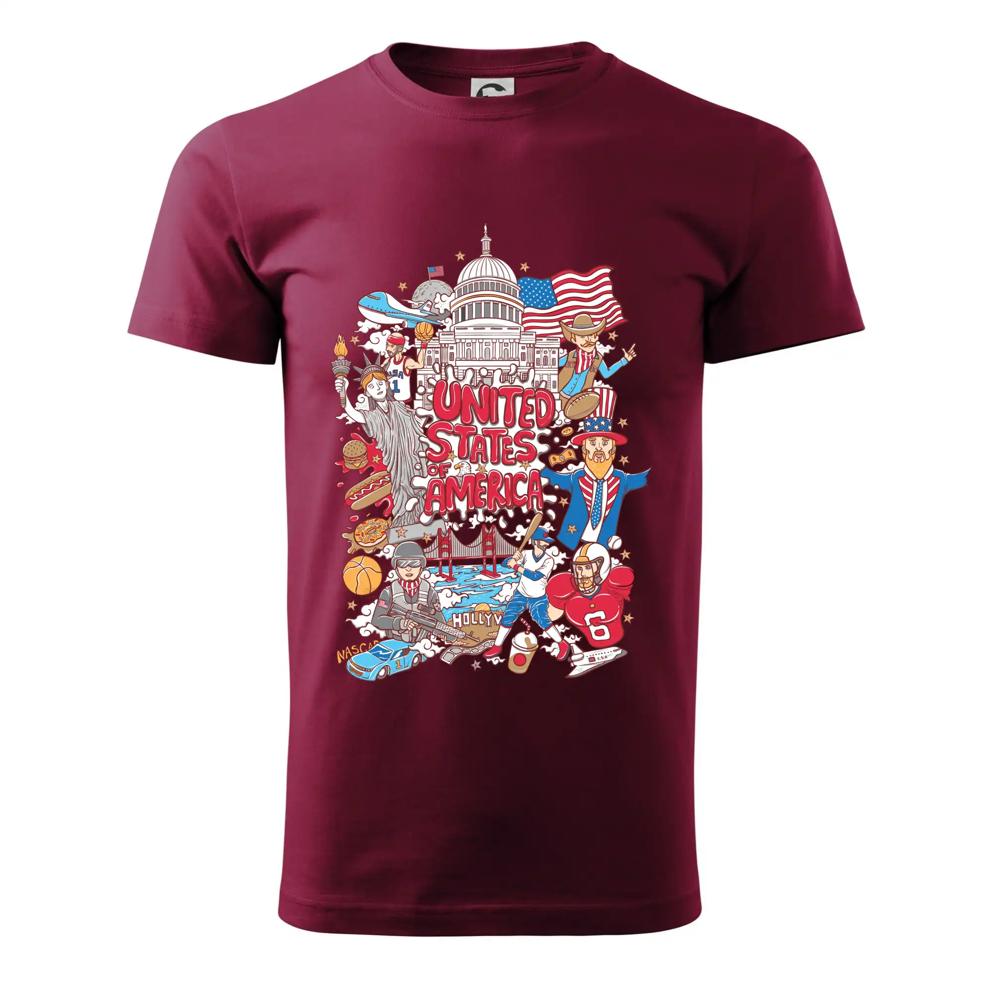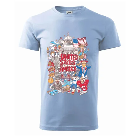 Cestovateľské tričko pre cestovateľa, ktorý má rád USA. Tričko s motívom "United states of America" Ti pozvanie do Ameriky uľahčí. Tričko je vhodné pre cestovateľov, ktorí majú radi poznávanie nových zemí, najmä Spojených štátov amerických. Amerika s týmto tričko bude na dosah.