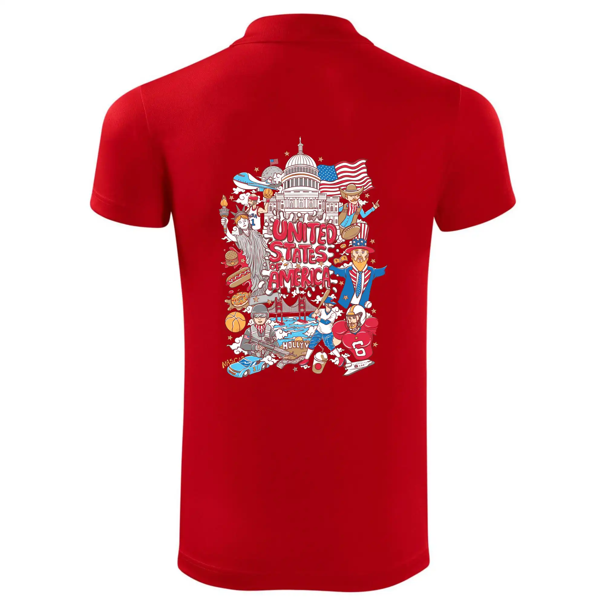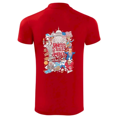 Cestovateľské tričko pre cestovateľa, ktorý má rád USA. Tričko s motívom "United states of America" Ti pozvanie do Ameriky uľahčí. Tričko je vhodné pre cestovateľov, ktorí majú radi poznávanie nových zemí, najmä Spojených štátov amerických. Amerika s týmto tričko bude na dosah.