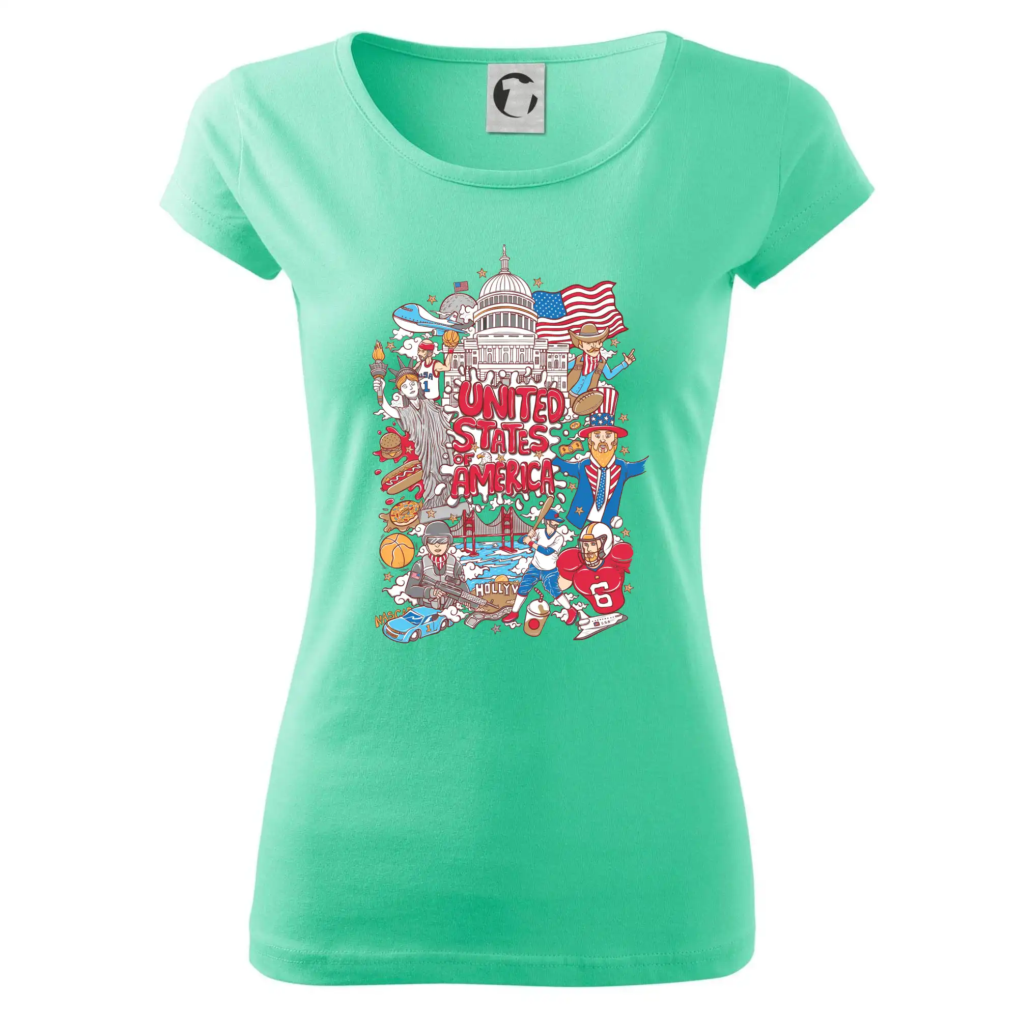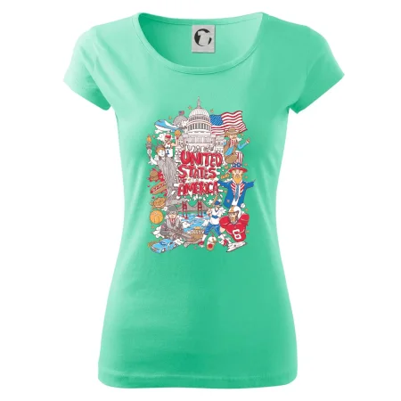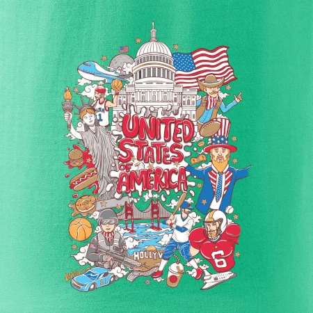 Cestovateľské tričko pre cestovateľa, ktorý má rád USA. Tričko s motívom "United states of America" Ti pozvanie do Ameriky uľahčí. Tričko je vhodné pre cestovateľov, ktorí majú radi poznávanie nových zemí, najmä Spojených štátov amerických. Amerika s týmto tričko bude na dosah.