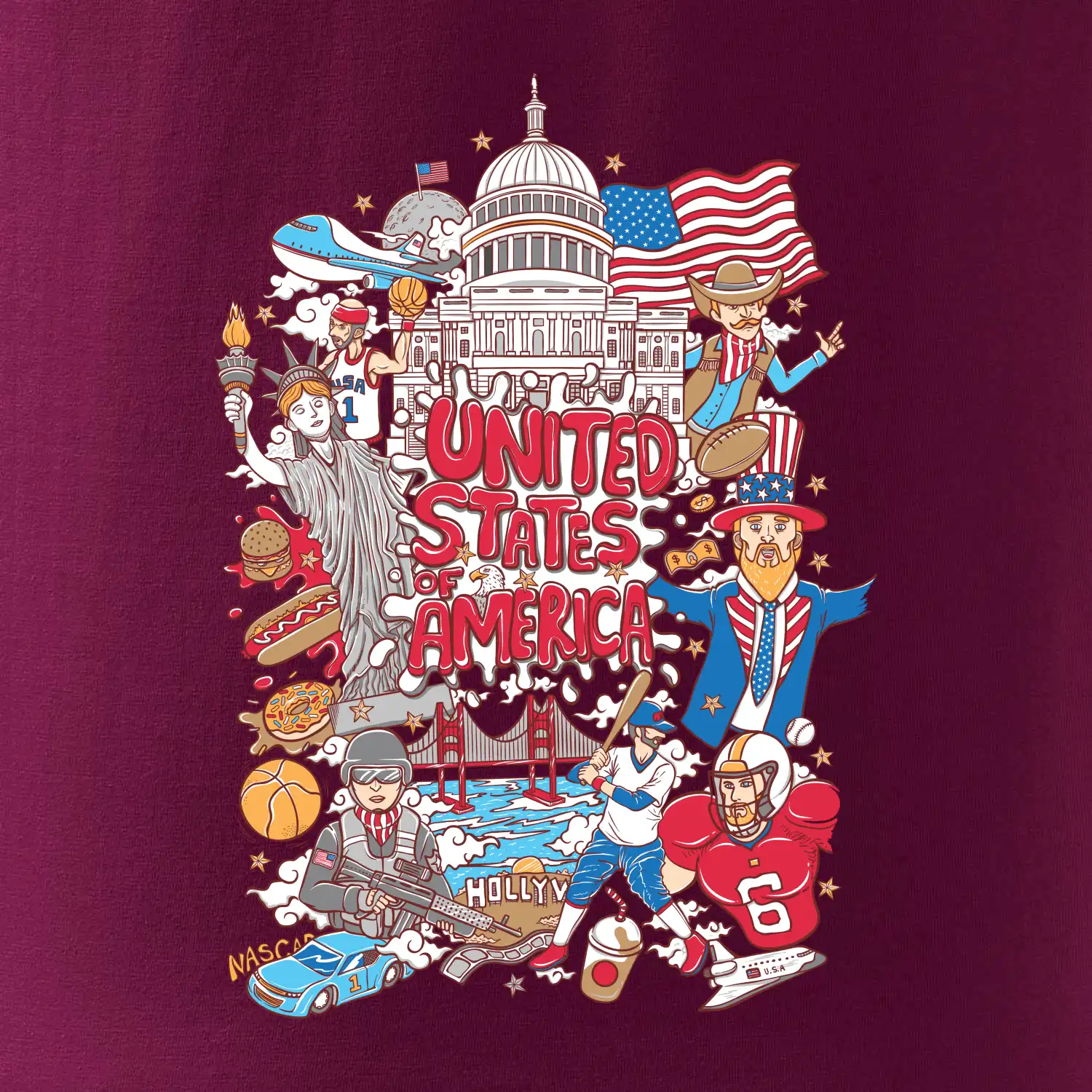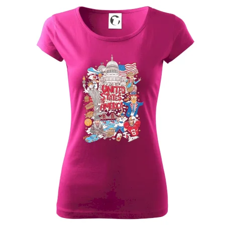 Cestovateľské tričko pre cestovateľa, ktorý má rád USA. Tričko s motívom "United states of America" Ti pozvanie do Ameriky uľahčí. Tričko je vhodné pre cestovateľov, ktorí majú radi poznávanie nových zemí, najmä Spojených štátov amerických. Amerika s týmto tričko bude na dosah.