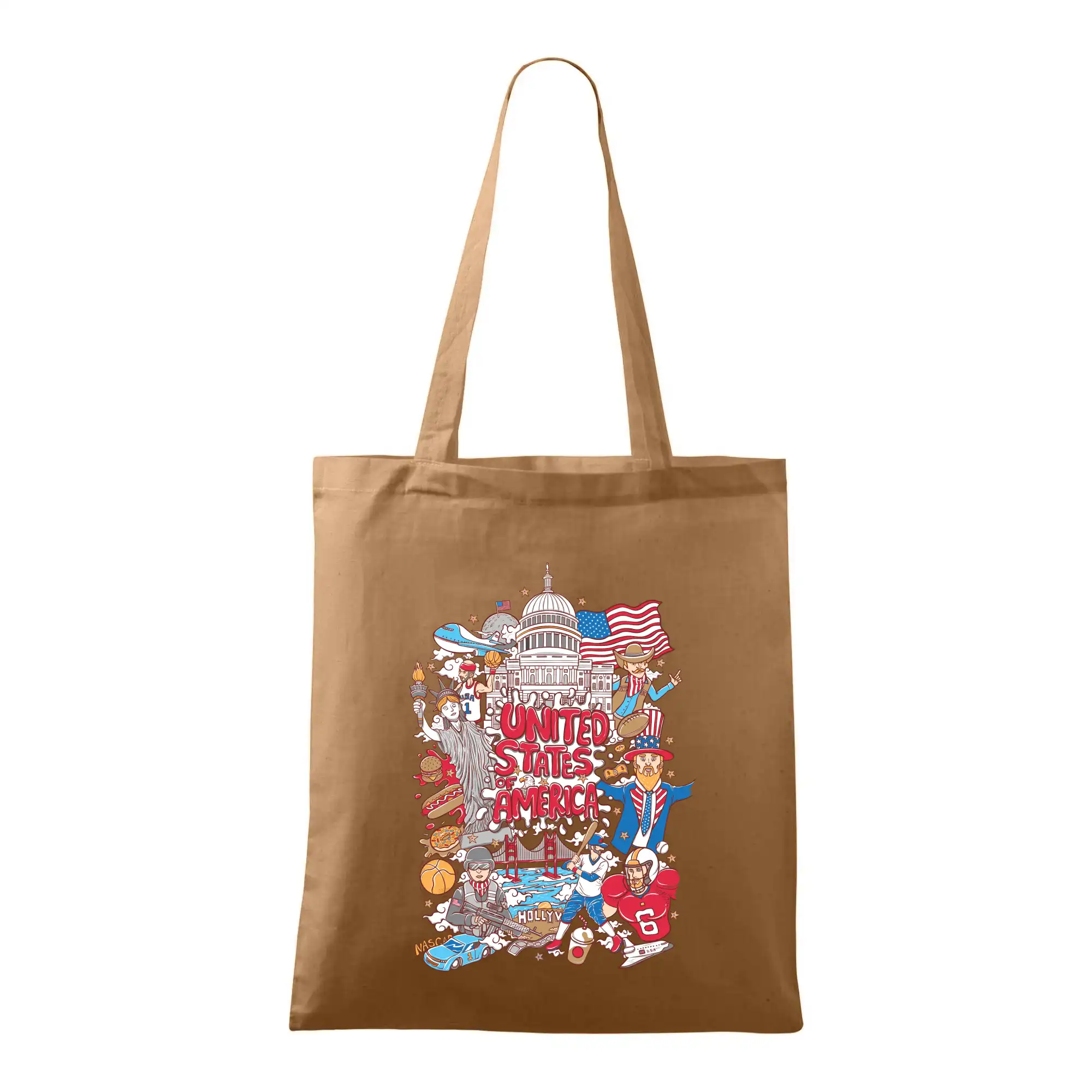 Cestovateľské tričko pre cestovateľa, ktorý má rád USA. Tričko s motívom "United states of America" Ti pozvanie do Ameriky uľahčí. Tričko je vhodné pre cestovateľov, ktorí majú radi poznávanie nových zemí, najmä Spojených štátov amerických. Amerika s týmto tričko bude na dosah.