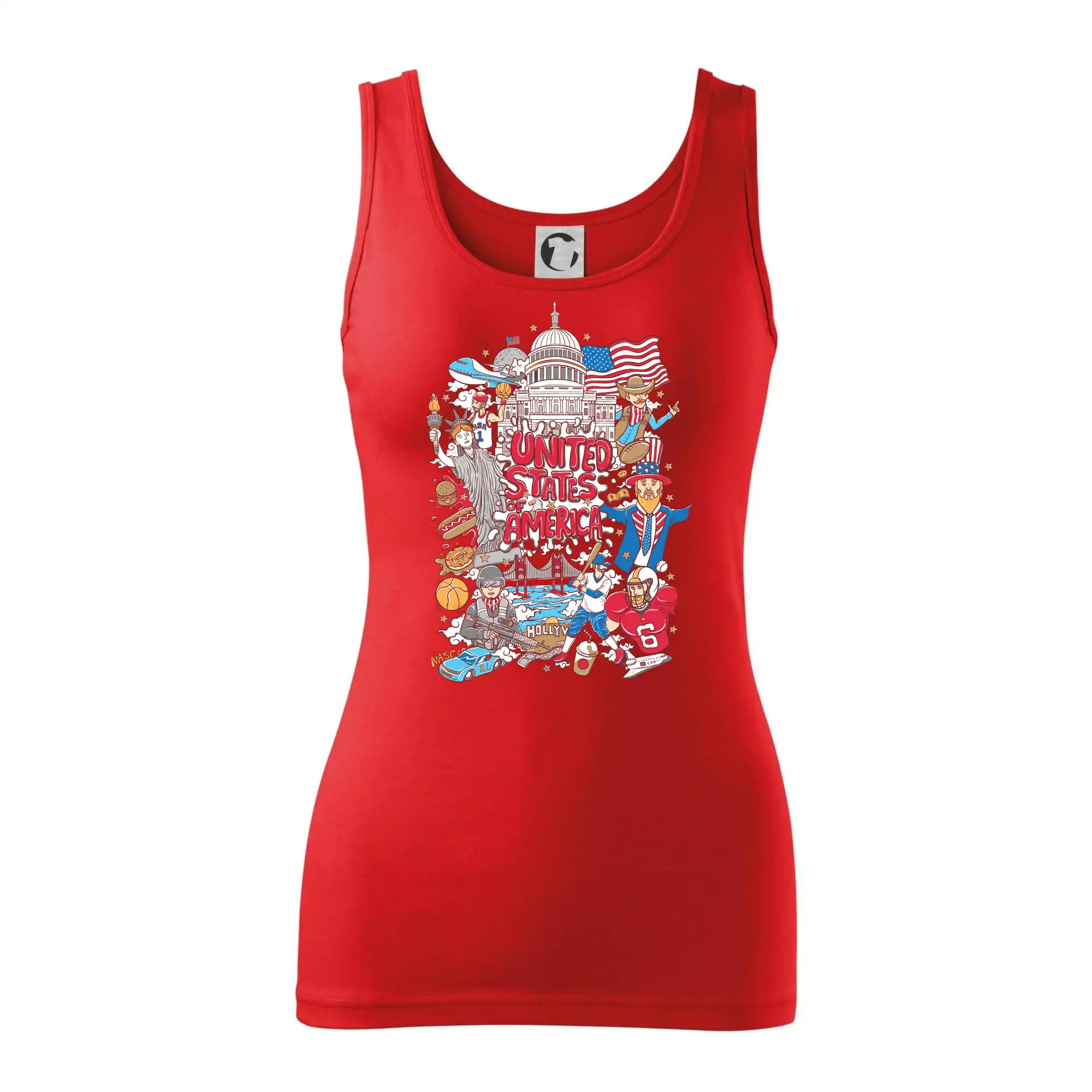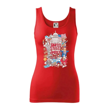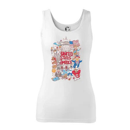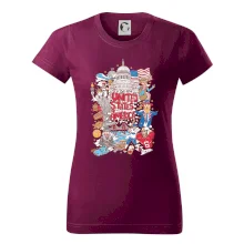 Cestovateľské tričko pre cestovateľa, ktorý má rád USA. Tričko s motívom "United states of America" Ti pozvanie do Ameriky uľahčí. Tričko je vhodné pre cestovateľov, ktorí majú radi poznávanie nových zemí, najmä Spojených štátov amerických. Amerika s týmto tričko bude na dosah.