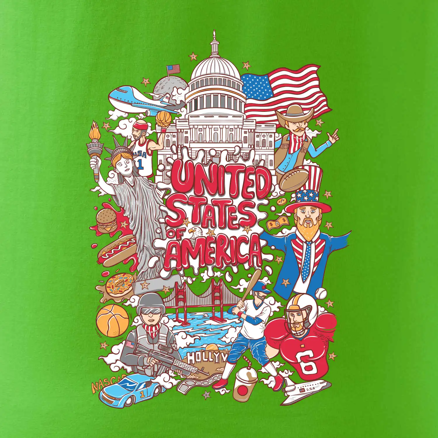Cestovateľské tričko pre cestovateľa, ktorý má rád USA. Tričko s motívom "United states of America" Ti pozvanie do Ameriky uľahčí. Tričko je vhodné pre cestovateľov, ktorí majú radi poznávanie nových zemí, najmä Spojených štátov amerických. Amerika s týmto tričko bude na dosah.