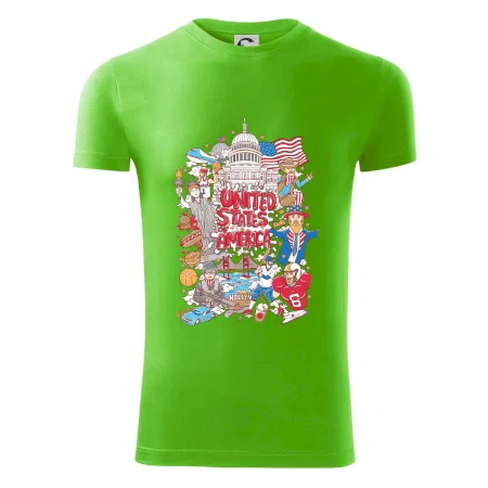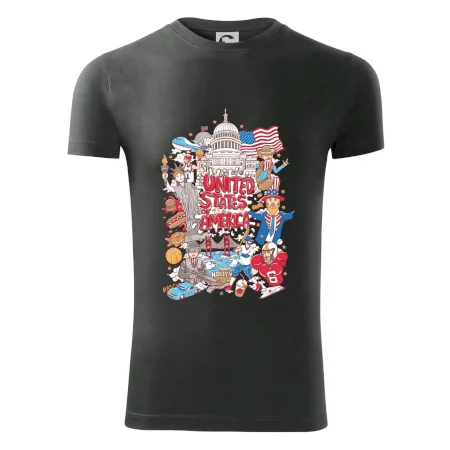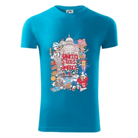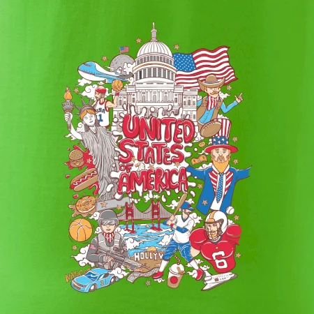 Cestovateľské tričko pre cestovateľa, ktorý má rád USA. Tričko s motívom "United states of America" Ti pozvanie do Ameriky uľahčí. Tričko je vhodné pre cestovateľov, ktorí majú radi poznávanie nových zemí, najmä Spojených štátov amerických. Amerika s týmto tričko bude na dosah.