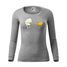Tolerantnejšie priliehavý dámsky strih, ktorý je vhodný pre všetky typy postavy, ideálna dĺžka rukávov a konzervatívny výstrih zakončený rebrovaním, ktoré skvele drží tvar.