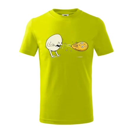Detské tričko strednej gramáže s bočnými švami. Úzky priekrčník s prídavkom 5% elastanu. Vnútorná časť zadného priekrčníka začistená tkanou páskou. Spevnený ramenný šev.