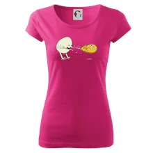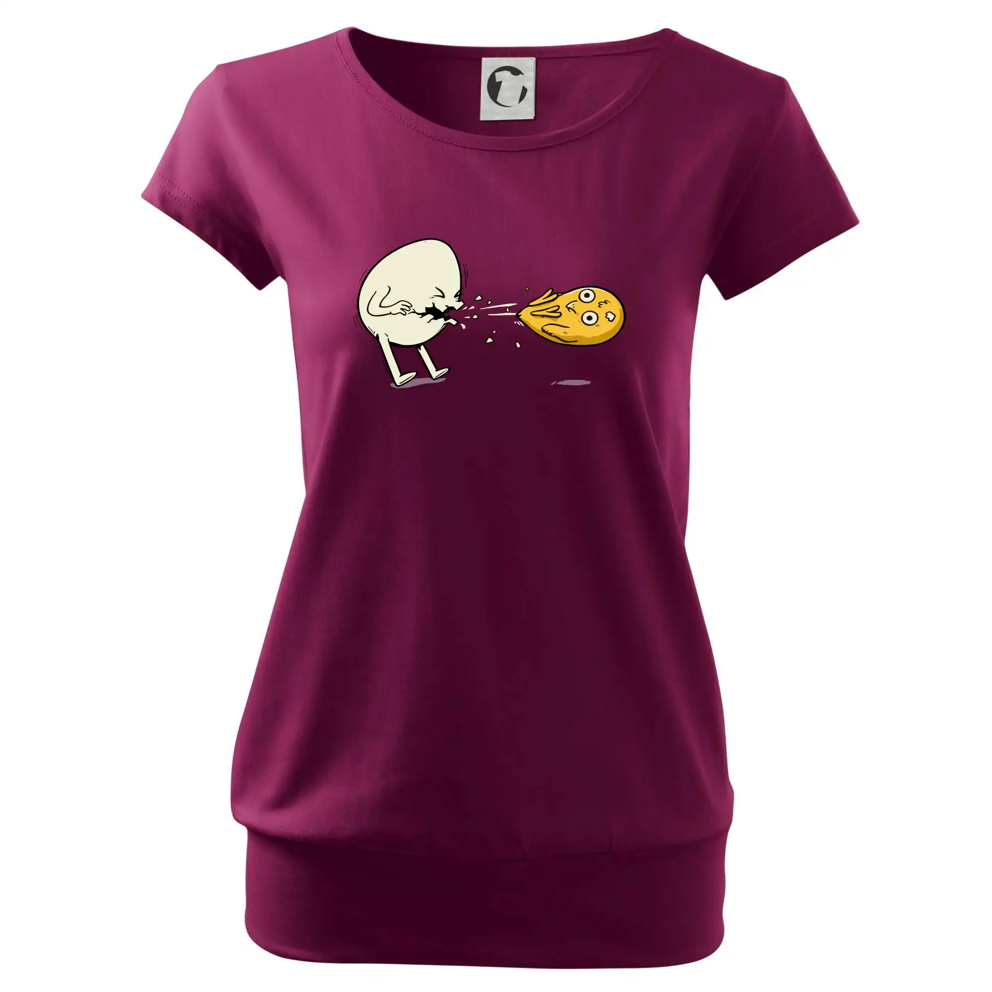 Trendové dámske tričko s veľmi krátkym rukávom, voľnejšieho strihu, v dolnom kraji všité do širokého lemu. Okrúhly priekrčník s úzkym lemom zo zhodného materiálu.