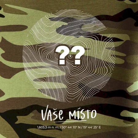 Tričko strednej gramáže vo farbách camouflage. Strih s bočnými švami. Lem priekrčníku z rebrového úpletu s prídavkom 5% elastanu. Vnútorná časť zadného priekrčníka začistená páskou vo farbe camouflage.