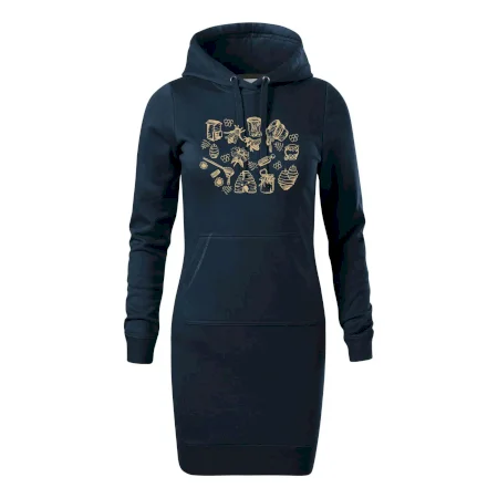 Dámske mikinové šaty MALFINI Snap 419 sú ideálnou voľbou pre ženy, ktoré hľadajú pohodlný a štýlový kúsok na voľný čas alebo každodenné nosenie. Ľahko vypasovaný strih s bočnými švami podčiarkuje ženskú siluetu, zatiaľ čo kapucňa s podšívkou a sťahovacou šnúrkou dodáva ležérny vzhľad. Šaty majú dĺžku nad kolená a sú vybavené našitým vreckom v štýle „klokanky“. Materiál je mäkký a príjemný na dotyk grâce à smesi bavlny a polyesteru s nepočesanou vnútornou stranou.