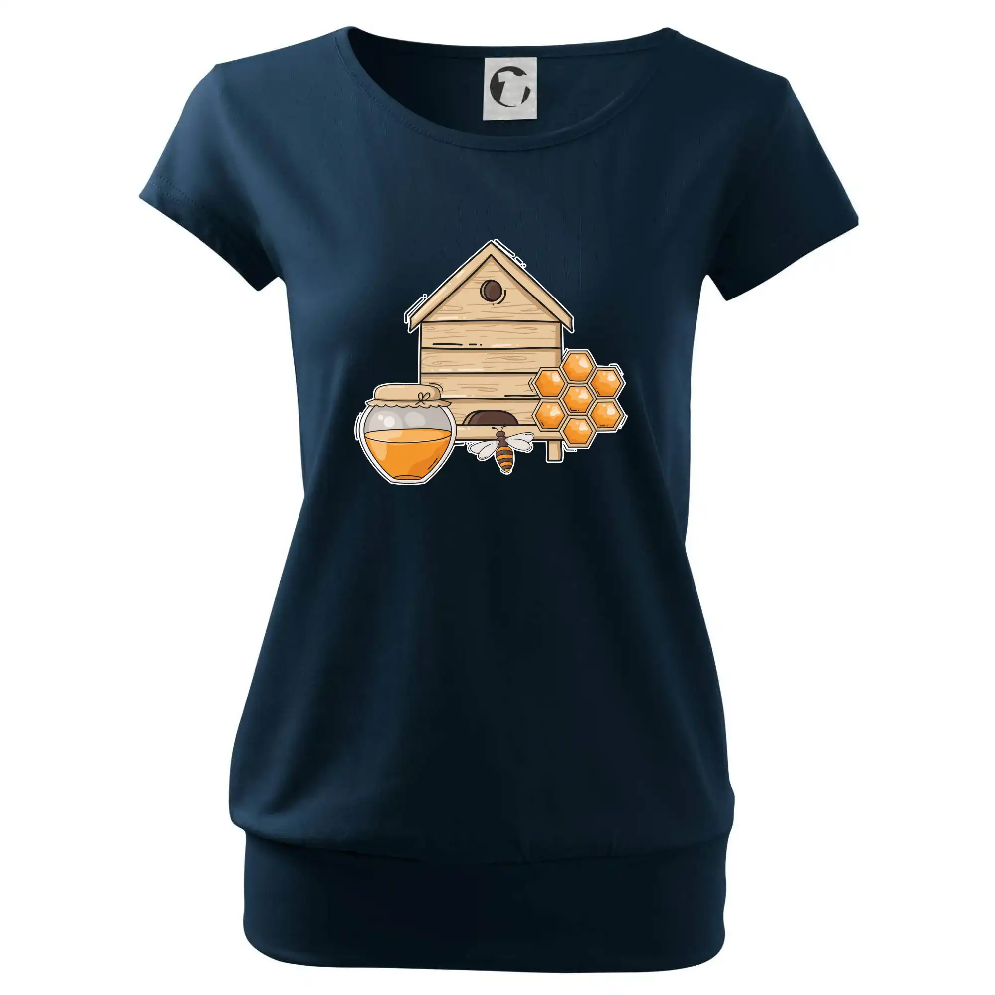 Trendové dámske tričko s veľmi krátkym rukávom, voľnejšieho strihu, v dolnom kraji všité do širokého lemu. Okrúhly priekrčník s úzkym lemom zo zhodného materiálu.