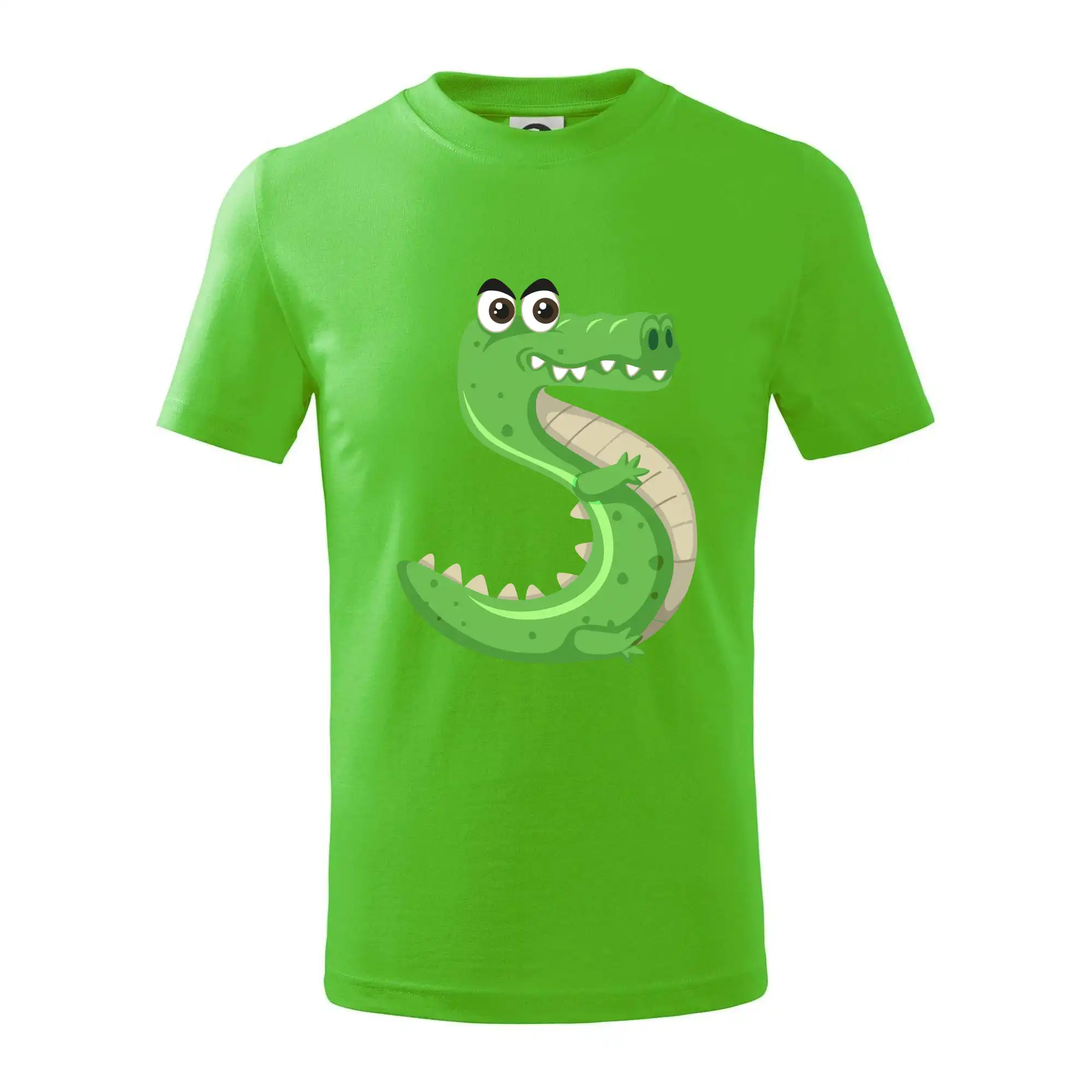 Detské tričko strednej gramáže s bočnými švami. Úzky priekrčník s prídavkom 5% elastanu. Vnútorná časť zadného priekrčníka začistená tkanou páskou. Spevnený ramenný šev.