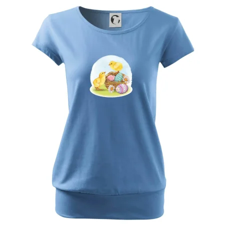 Trendové dámske tričko s veľmi krátkym rukávom, voľnejšieho strihu, v dolnom kraji všité do širokého lemu. Okrúhly priekrčník s úzkym lemom zo zhodného materiálu.