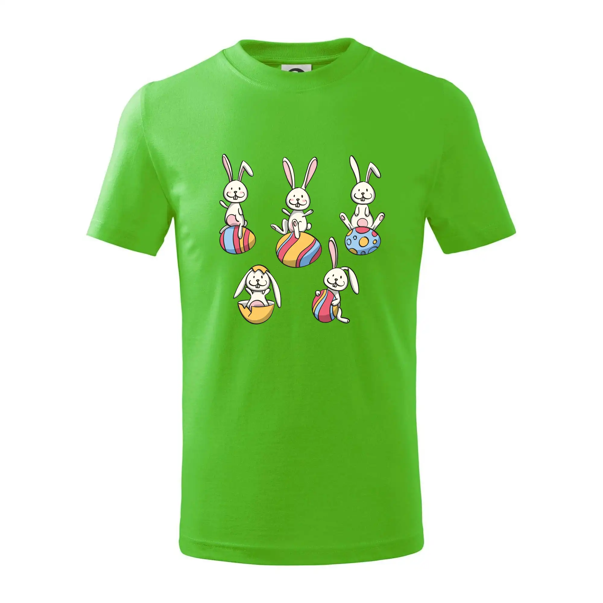 Detské tričko strednej gramáže s bočnými švami. Úzky priekrčník s prídavkom 5% elastanu. Vnútorná časť zadného priekrčníka začistená tkanou páskou. Spevnený ramenný šev.