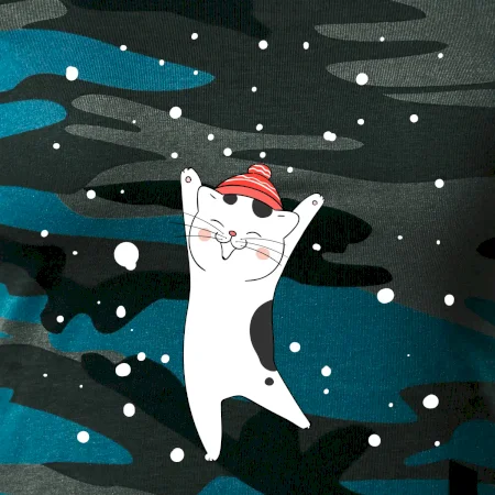 Veselá mačka v zimnej čiapke