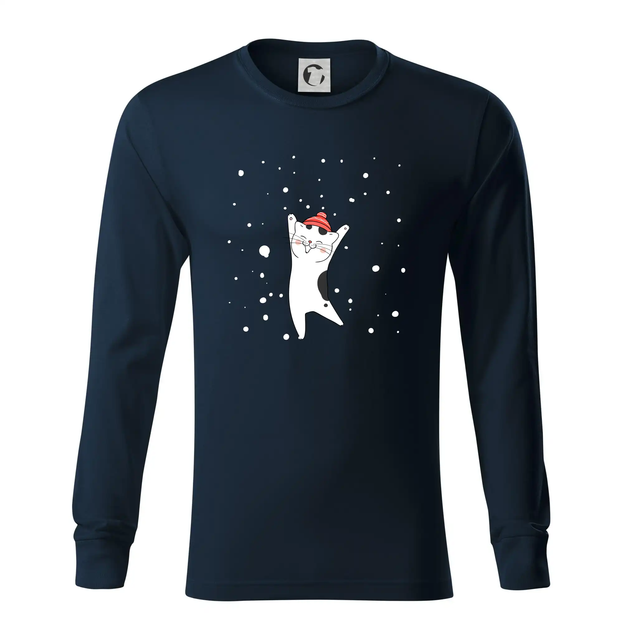Veselá mačka v zimnej čiapke
