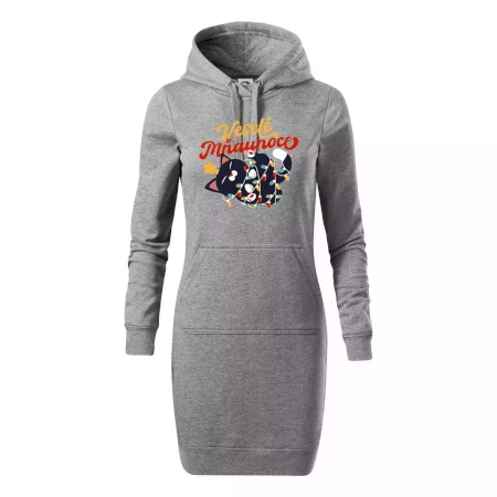 Dámske mikinové šaty MALFINI Snap 419 sú ideálnou voľbou pre ženy, ktoré hľadajú pohodlný a štýlový kúsok na voľný čas alebo každodenné nosenie. Ľahko vypasovaný strih s bočnými švami podčiarkuje ženskú siluetu, zatiaľ čo kapucňa s podšívkou a sťahovacou šnúrkou dodáva ležérny vzhľad. Šaty majú dĺžku nad kolená a sú vybavené našitým vreckom v štýle „klokanky“. Materiál je mäkký a príjemný na dotyk grâce à smesi bavlny a polyesteru s nepočesanou vnútornou stranou.