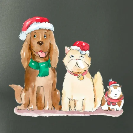 Veselé vianoce - pes, škrečok a mačka
