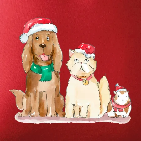 Veselé vianoce - pes, škrečok a mačka