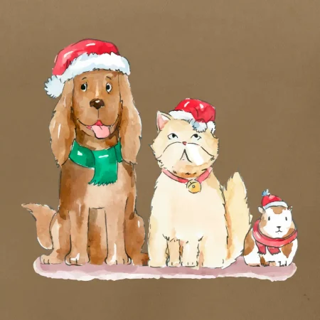 Veselé vianoce - pes, škrečok a mačka