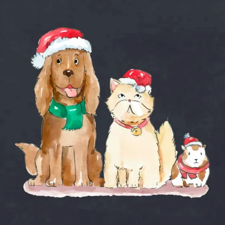 Veselé vianoce - pes, škrečok a mačka