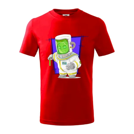 Detské tričko strednej gramáže s bočnými švami. Úzky priekrčník s prídavkom 5% elastanu. Vnútorná časť zadného priekrčníka začistená tkanou páskou. Spevnený ramenný šev.