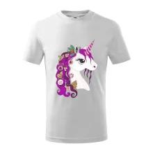 Detské tričko strednej gramáže s bočnými švami. Úzky priekrčník s prídavkom 5% elastanu. Vnútorná časť zadného priekrčníka začistená tkanou páskou. Spevnený ramenný šev.
