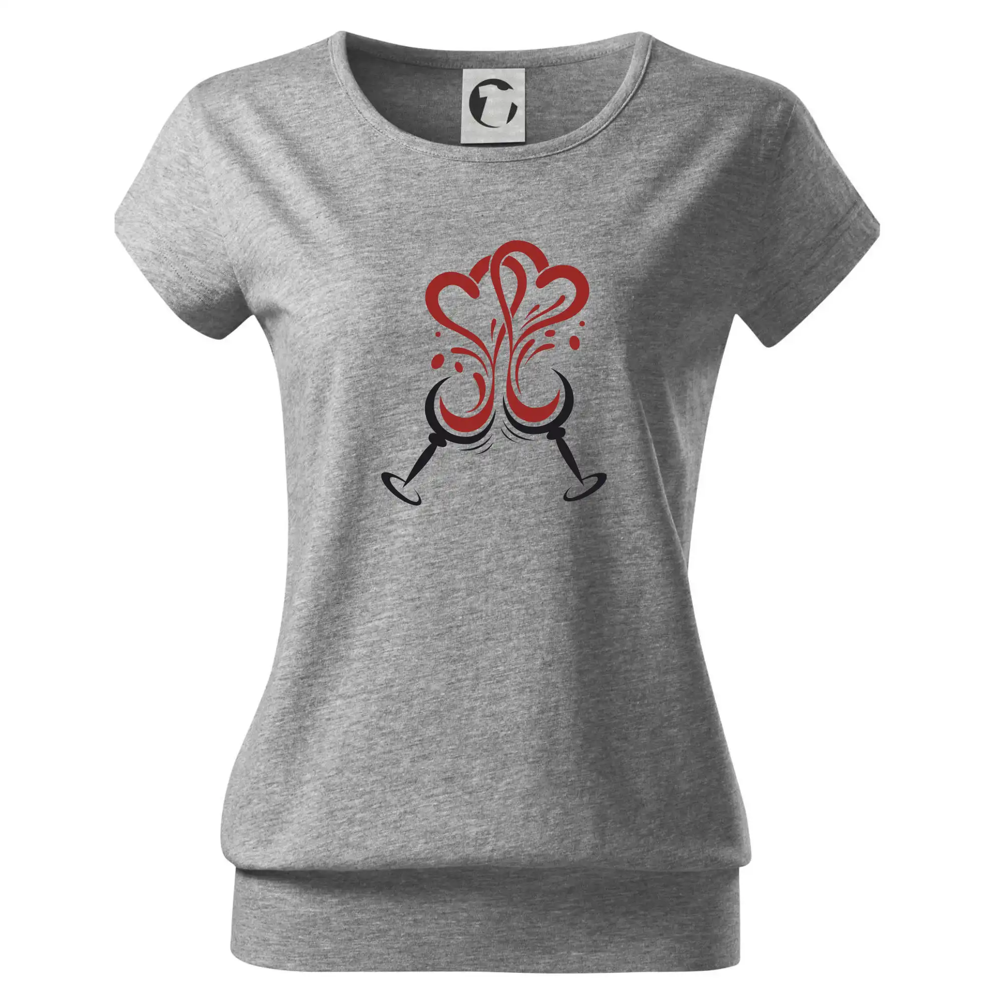 Trendové dámske tričko s veľmi krátkym rukávom, voľnejšieho strihu, v dolnom kraji všité do širokého lemu. Okrúhly priekrčník s úzkym lemom zo zhodného materiálu.