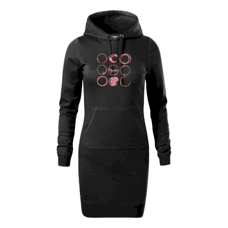 Dámske mikinové šaty MALFINI Snap 419 sú ideálnou voľbou pre ženy, ktoré hľadajú pohodlný a štýlový kúsok na voľný čas alebo každodenné nosenie. Ľahko vypasovaný strih s bočnými švami podčiarkuje ženskú siluetu, zatiaľ čo kapucňa s podšívkou a sťahovacou šnúrkou dodáva ležérny vzhľad. Šaty majú dĺžku nad kolená a sú vybavené našitým vreckom v štýle „klokanky“. Materiál je mäkký a príjemný na dotyk grâce à smesi bavlny a polyesteru s nepočesanou vnútornou stranou.