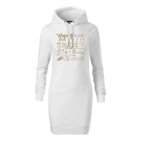 Dámske mikinové šaty MALFINI Snap 419 sú ideálnou voľbou pre ženy, ktoré hľadajú pohodlný a štýlový kúsok na voľný čas alebo každodenné nosenie. Ľahko vypasovaný strih s bočnými švami podčiarkuje ženskú siluetu, zatiaľ čo kapucňa s podšívkou a sťahovacou šnúrkou dodáva ležérny vzhľad. Šaty majú dĺžku nad kolená a sú vybavené našitým vreckom v štýle „klokanky“. Materiál je mäkký a príjemný na dotyk grâce à smesi bavlny a polyesteru s nepočesanou vnútornou stranou.