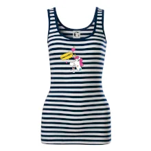 Ramená spevnené všitým prúžkom. Tričko siaha do hĺbky bokov. Silikónová úprava zabezpečuje mäkký a splývavý omak.