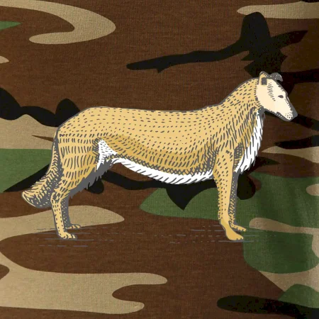 Tričko strednej gramáže vo farbách camouflage. Strih s bočnými švami. Lem priekrčníku z rebrového úpletu s prídavkom 5% elastanu. Vnútorná časť zadného priekrčníka začistená páskou vo farbe camouflage.