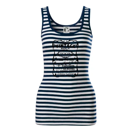 Dámske tielko MALFINI Sailor Top 806 prináša ikonický námornícky vzhľad s bielo-modrými pruhmi, ideálne na letné dni, výlety alebo ležérne outfity.