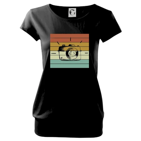 Trendové dámske tričko s veľmi krátkym rukávom, voľnejšieho strihu, v dolnom kraji všité do širokého lemu. Okrúhly priekrčník s úzkym lemom zo zhodného materiálu.