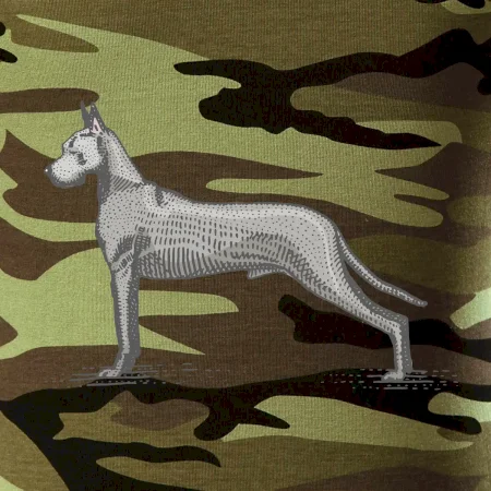Tričko strednej gramáže vo farbách camouflage. Strih s bočnými švami. Lem priekrčníku z rebrového úpletu s prídavkom 5% elastanu. Vnútorná časť zadného priekrčníka začistená páskou vo farbe camouflage.