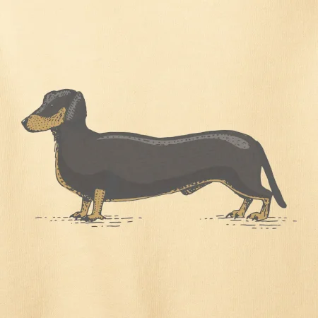 Dachshund neboli jezevčík. Tohle plemeno je oblíbené hlavně u starších lidí. Tričko nebo mikina jako dáreček by určitě udělaly radost babičce i dědečkovi.