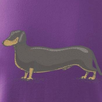 Dachshund neboli jezevčík. Tohle plemeno je oblíbené hlavně u starších lidí. Tričko nebo mikina jako dáreček by určitě udělaly radost babičce i dědečkovi.