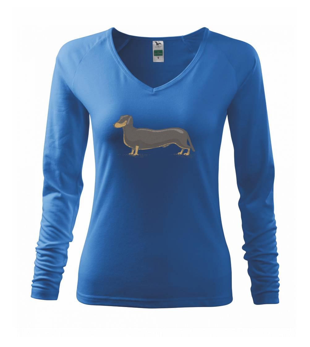 Dachshund neboli jezevčík. Tohle plemeno je oblíbené hlavně u starších lidí. Tričko nebo mikina jako dáreček by určitě udělaly radost babičce i dědečkovi.