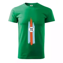 Narodeninové tričko pre oslávenca, ktorý oslavuje jubileum 70 rokov. Tričko, na ktorom je číslovka 70 vo vintage štýle. Darček k sedemdesiatim narodeninám.