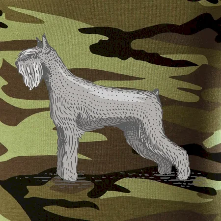 Tričko strednej gramáže vo farbách camouflage. Strih s bočnými švami. Lem priekrčníku z rebrového úpletu s prídavkom 5% elastanu. Vnútorná časť zadného priekrčníka začistená páskou vo farbe camouflage.