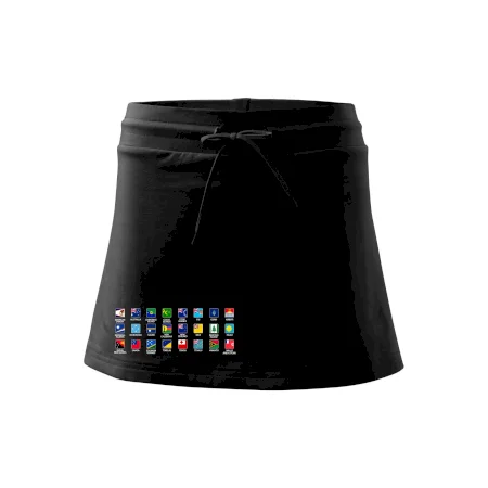 Dámska kraťasová sukňa MALFINI Two in One 604 je perfektnou kombináciou sukne a šortiek, ideálna na šport, voľný čas alebo ležérne nosenie. Vďaka prídavku elastanu si sukňa zachováva tvar a ponúka pohodlie pri pohybe. Krátky strih do tvaru „A“ a široký elastický pás so sťahovacou šnúrkou zabezpečujú voľnosť a prispôsobenie.